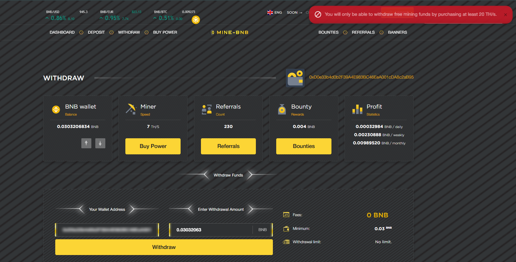 Claim free hashrate daily.